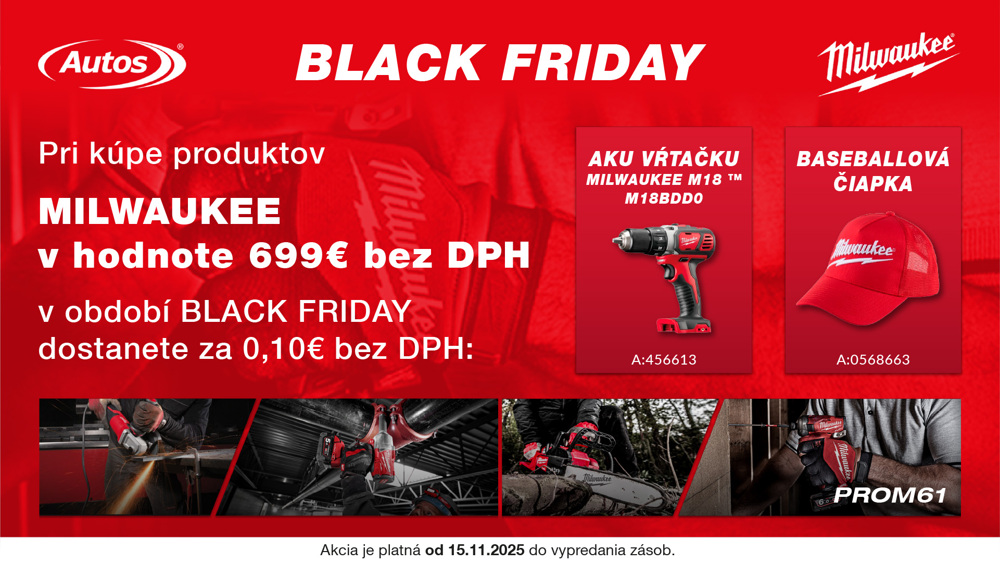 Pri kúpe produktov MIlwaukee v hodnote 699€ bez DPH v období BLACKFRIDAY dostanete za 0,10€ bez DPH  vŕtačku a šiltovku.